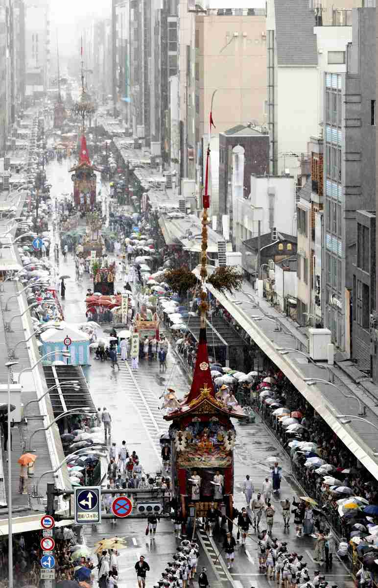 Kyoto Gion Festival: Yamahoko Float Procession Held in Kyoto’s Gion Festival in Rain; Festival Dates Back to Heian Period
