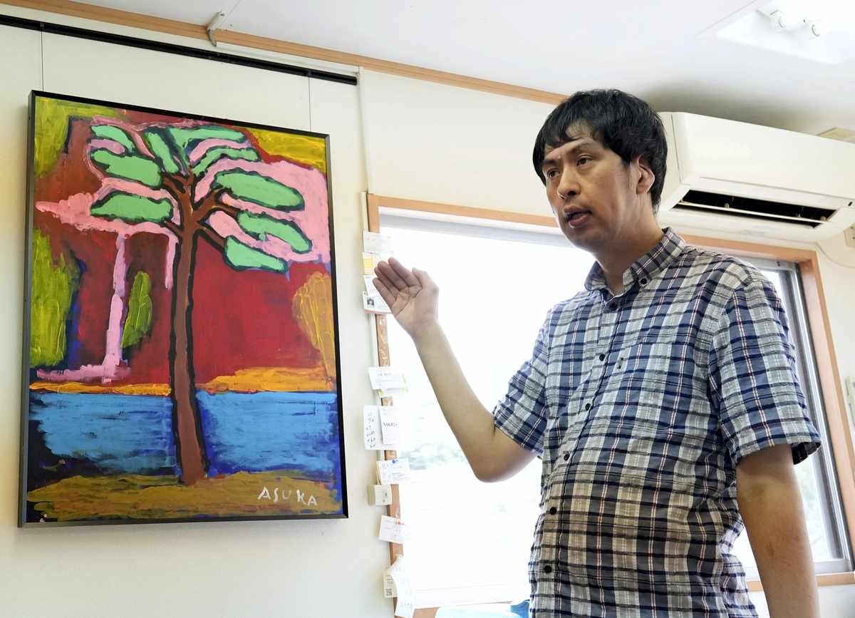 Since then, he has painted about 50 works based on the earthquake, including the “Miracle Pine Tree,” depicting a tree that survived the tsunami. He has gradually shifted to using gentle colors.