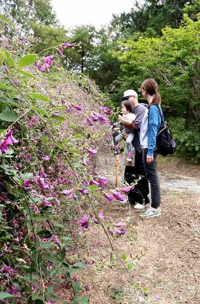 The flowers of hagi Japanese bush clover herald the arrival of autumn at Hagi Park in Nagai, Yamagata Prefecture. Visitors enjoy leisurely strolls and admire the drooping branches decorated in pinks and purples. A farmer established the park on his land in 1929 by planting hagi, and it is now said to feature 15 varieties. “They’ve grown taller than usual this year,” said an employee of the facility. The flowers will be at their peak until around Thursday. The park is open to the public from 10 a.m. to 5 p.m., free of charge.