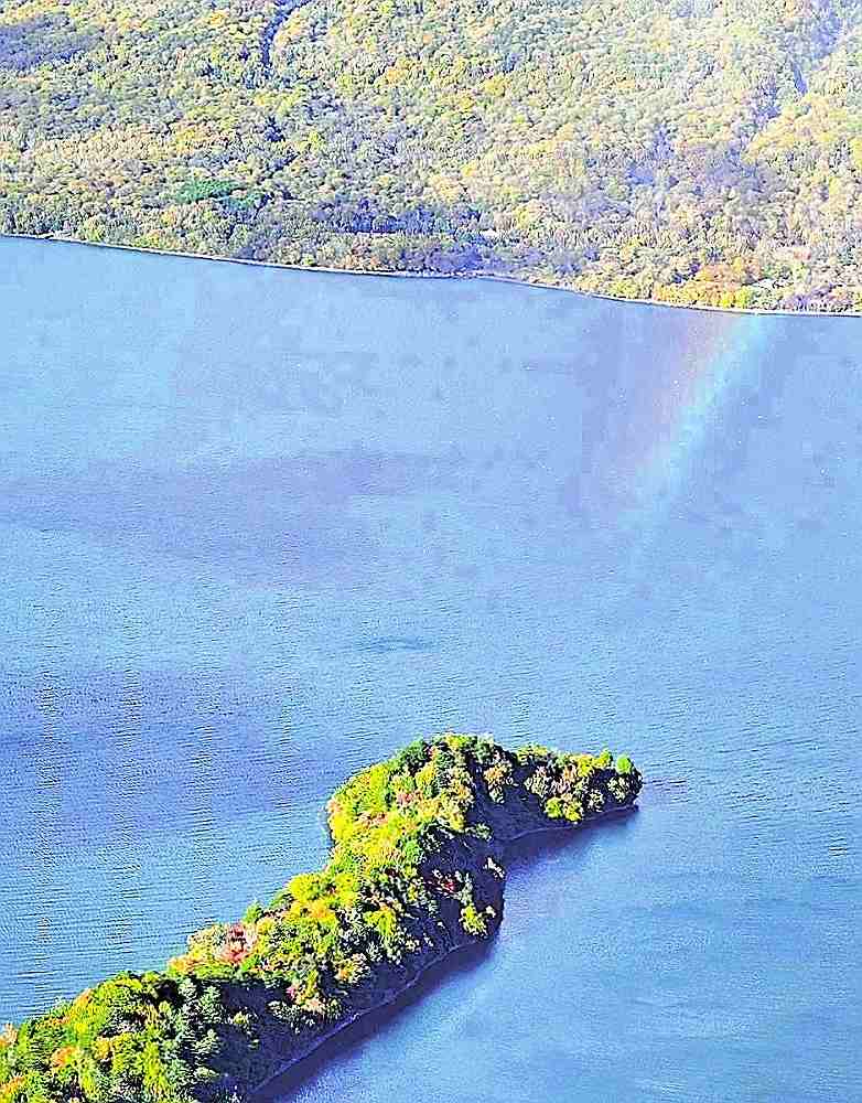 The autumn foliage at Lake Chuzenji, 1269m above sea level, in Oku-Nikkō, Tochigi Prefecture, has reached its peak. At Haccho-deshima, a boot-shaped peninsula jutting out into the lake, maple and katsura trees have turned red and yellow, reflecting beautifully on the lake’s surface.