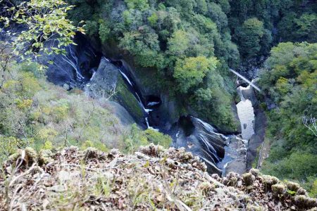 Back at the summit, the next leg awaits: a descent down a near-vertical rocky section. After passing Mt. Tatsugami, take in the bird’s-eye view of Fukuroda Falls from the overlook above the cascade. Next, retrace your steps to a fork marked by a C-15 sign and begin your descent toward Takimoto in the Fukuroda hot spring area.