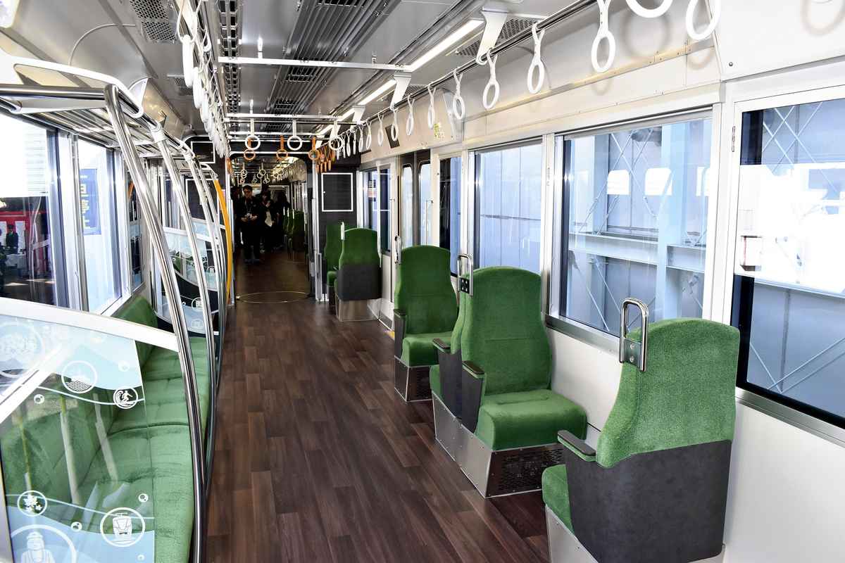 Cross-facing seats are installed on the side of the train with a seaside view, and the number of seats has been reduced to help mitigate crowding.