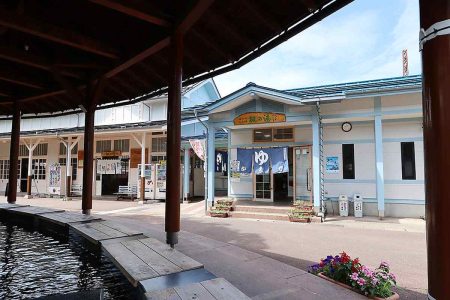 Kaede no Yu, a hot spring facility, stands next to Yudanaka Station. It is open from 10 a.m. to 8:30 p.m. and closed on the first Tuesday of the month. When it falls on a national holiday, the facility is closed the next day. Admission is ¥500.