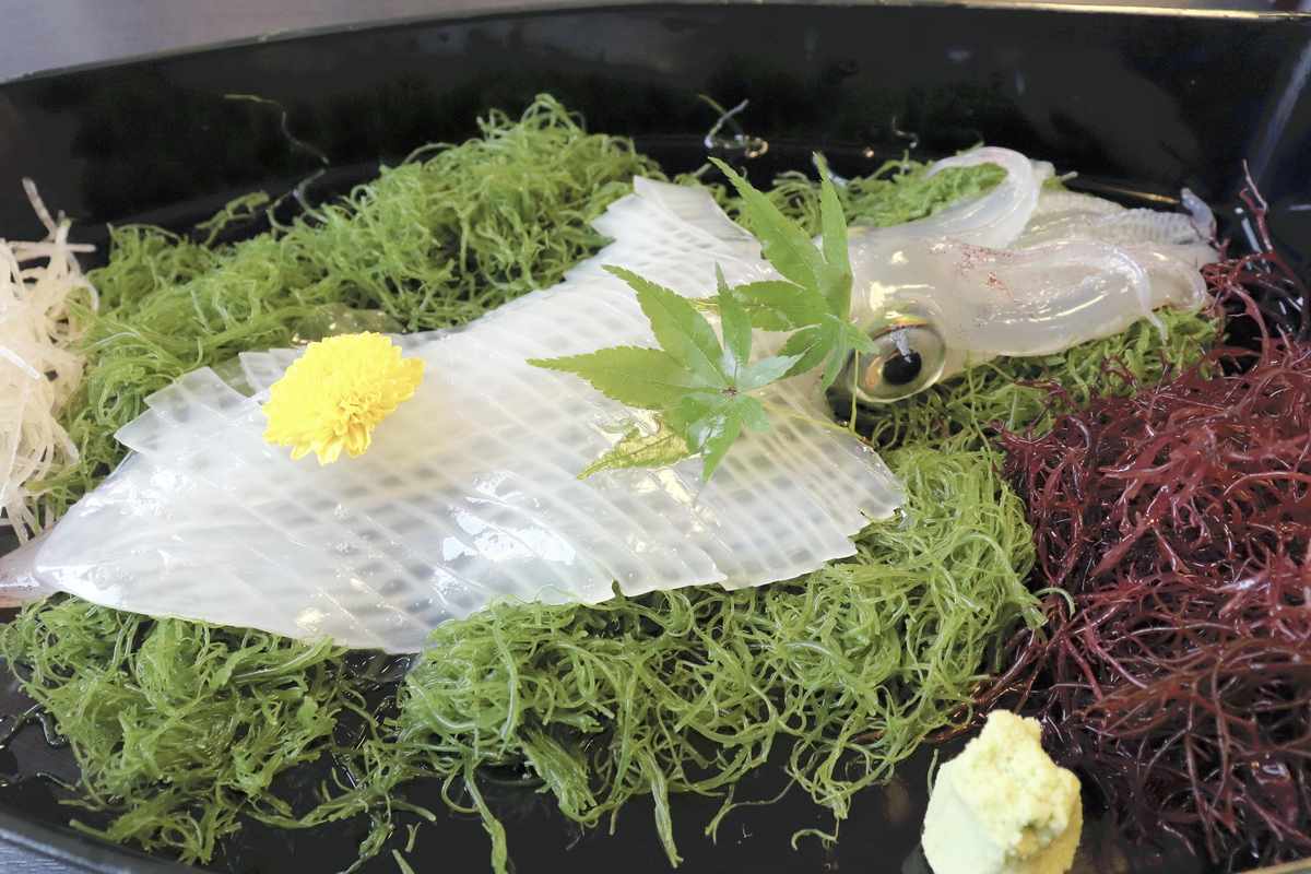 The Yobuko squid refers to squids caught in the Genkai Sea, the sea off the northwest coast of Kyushu, and landed at fishing ports in the Yobuko district. Its translucent, thick flesh and freshness are popular, attracting tourists nationwide. The squid is said to have become popular about 50 years ago after a local fish wholesaler began offering sashimi prepared from live squid.