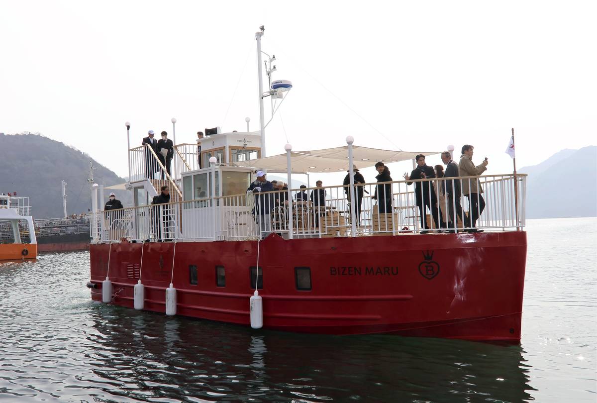 A launching ceremony was held at Hinase Port in the city on Feb. 5, where attendees boarded the ship for a 20-minute cruise.