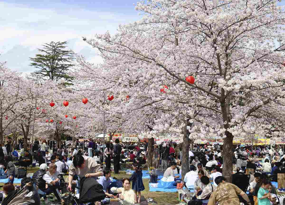 Cherry blossom viewers flock to Nishi Park in Sendai, Miyagi Prefecture, on Sunday.