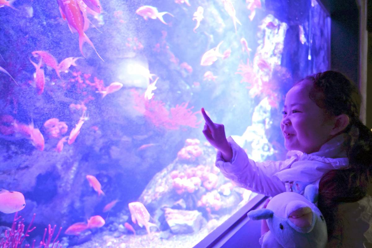 Cherry anthias swim at the Sendai Umino-Mori Aquarium, in Sendai, Miyagi Prefecture, on Sunday.
