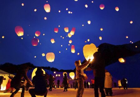 Japan Tourism / Sky Lanterns Light Up Night Sky in Japan’s Hanamaki Area in Iwate Prefecture