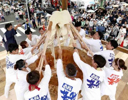 Annual Hokkaido Mochi Pounding Festival in Which a Massive Mortar, Pestle Are Used Begins