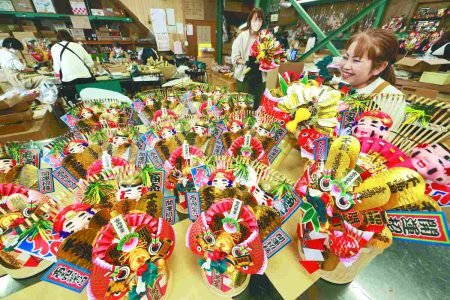Workers assemble decorative fuku-kumade “lucky rakes” at the workshop of a cooperative in Nara Ci...