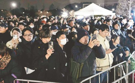 The Yomiuri ShimbunPeople gather for a candidate’s street speech in Tokyo, Saturday. The Yomiu...