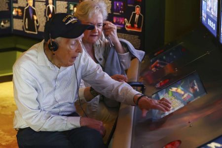 JAMESTOWN, N.Y. (AP) — Side by side on a sofa inside the National Comedy Center, Gail and Mario C...