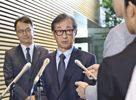 Nippon Steel Corp. Chairman Eiji Hashimoto and other executives met with Prime Minister Shigeru I...