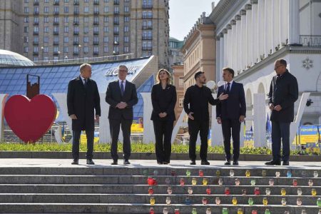 KYIV, Ukraine (AP) — The leaders of four European countries arrived in Kyiv Saturday in a joint s...