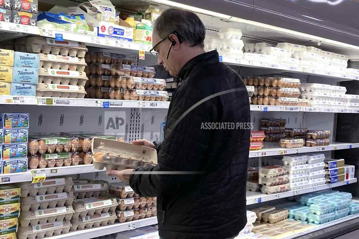 A shopper checks eggs before he purchases at a grocery store in Glenview, Ill., Tuesday, Jan. 10, 2023.