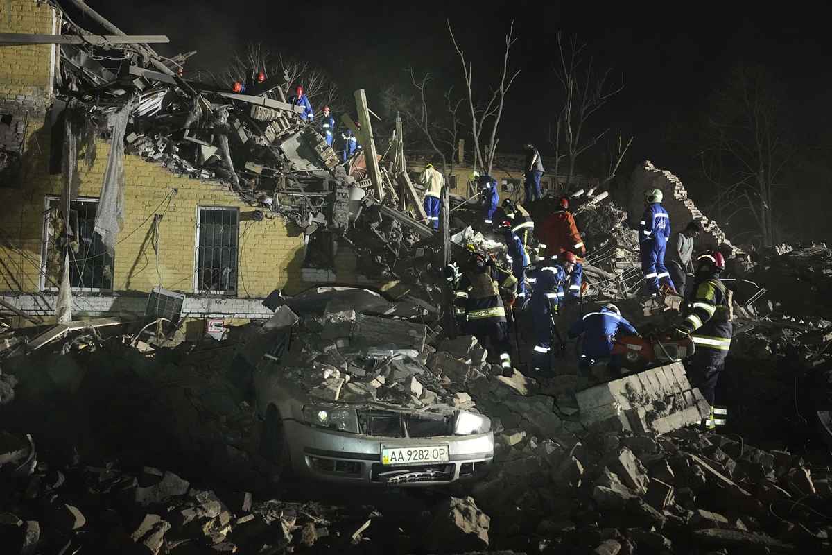 The Ukrainian air force said Russia fired 66 ballistic and cruise missiles, four plane-launched air-to-surface missiles and 145 Shahed and decoy drones at Kyiv and four other regions of Ukraine. Rescue workers with flashlights searched the charred rubble of partly collapsed homes as the blue lights of emergency vehicles lit up the dark city streets.