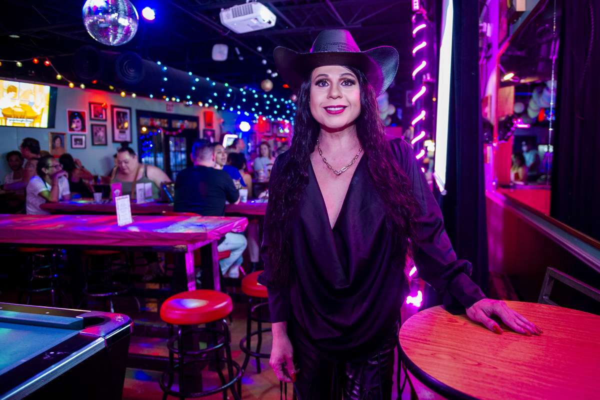 Audrey Campos poses for The Associated Press while hosting a Loteria game night at Jackie O’s Cocktail Club in Fort Worth, Texas, Tuesday, May 27, 2025.