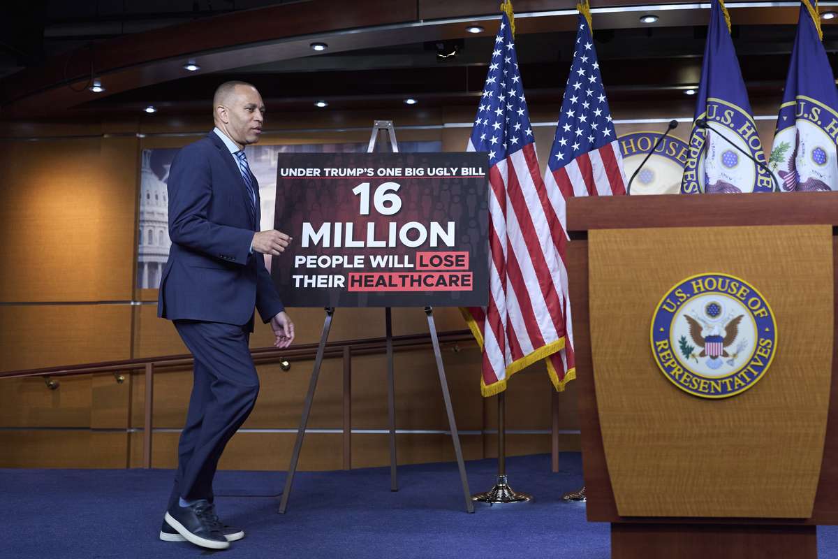 House Minority Leader Hakeem Jeffries, D-N.Y., arrives to speak with reporters about the spending and tax bill embraced by President Donald Trump and Republicans, at the Capitol in Washington, Friday, June 6, 2025.