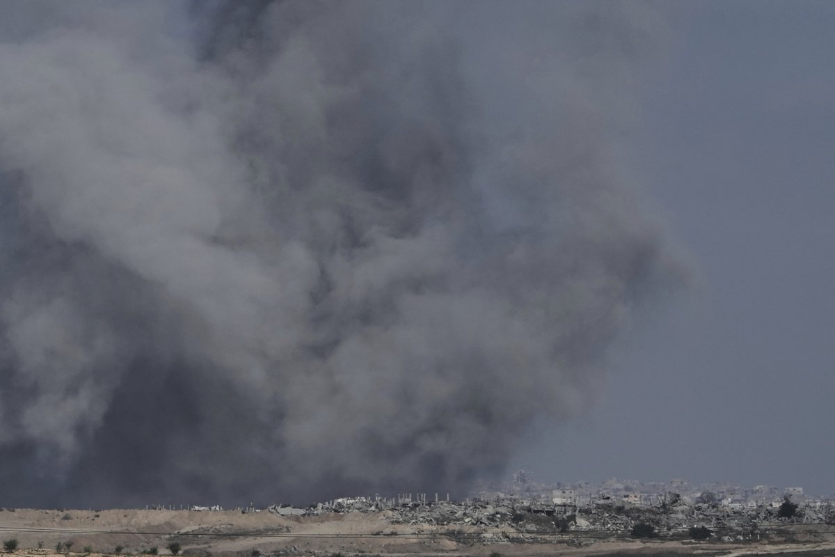 Smoke from Israeli bombardment of the northern Gaza Strip near the Israel-Gaza border, seen from southern Israel, Monday, July 14, 2025