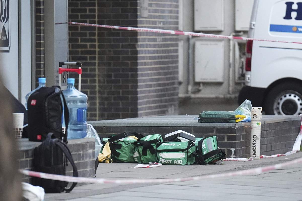 Medical bags at the scene in Southwark, south London, Monday, July 28, 2025, where four people were stabbed earlier today.