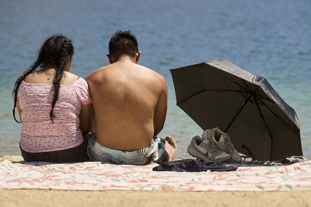 A couple cools off at Castaic Lake as temperatures rise on Wednesday, Aug. 20, 2025, in Castaic, Calif.