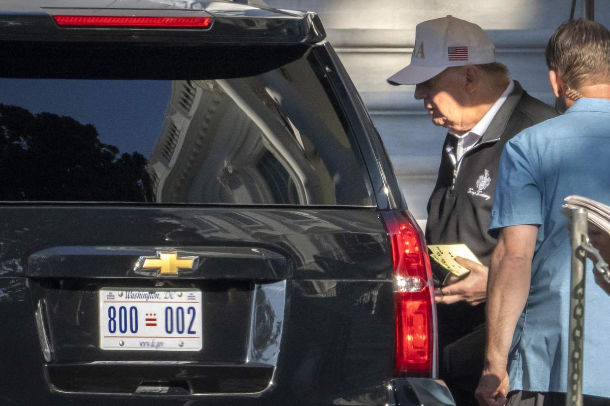 President Donald Trump walks to board the presidential limousine at the White House, Monday, Sept. 1, 2025, in Washington.