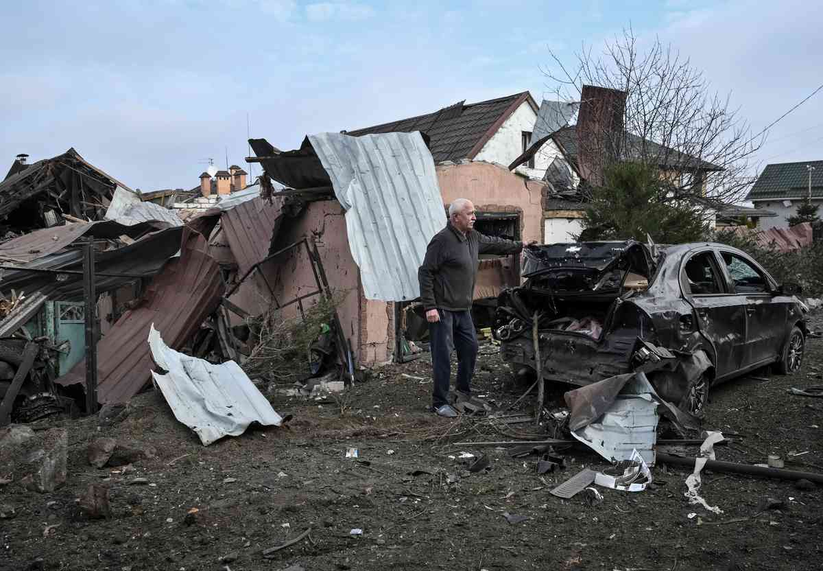 A resident stands near his building and car hit by a Russian air strike, amid Russia’s attack on Ukraine, in Zaporizhzhia, Ukraine December 19, 2025.