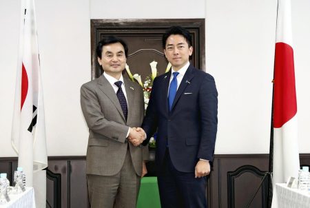 YOKOSUKA, Kanagawa (Jiji Press) — Japanese Defense Minister Shinjiro Koizumi and his South Korean...