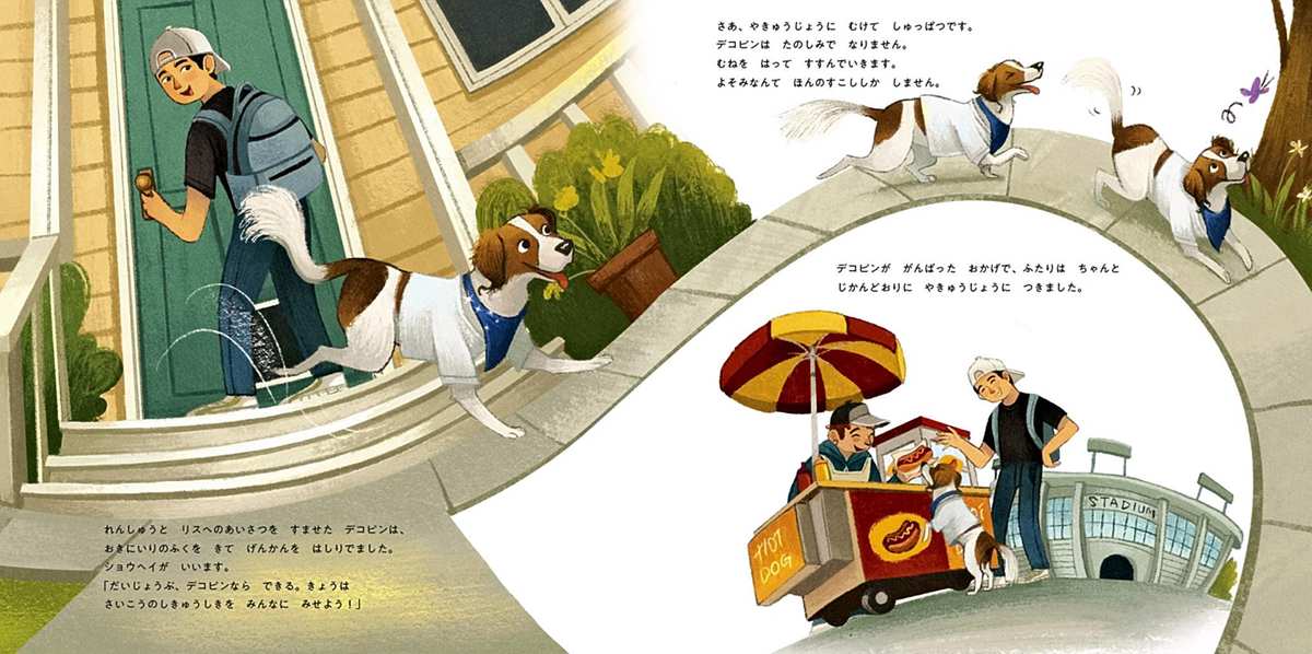 The book, whose original title is “Decoy Saves Opening Day,” describes how the dog, called Dekopin in Japanese, manages to survive opening day when he is supposed to throw the first pitch but leaves his “lucky ball” at home.