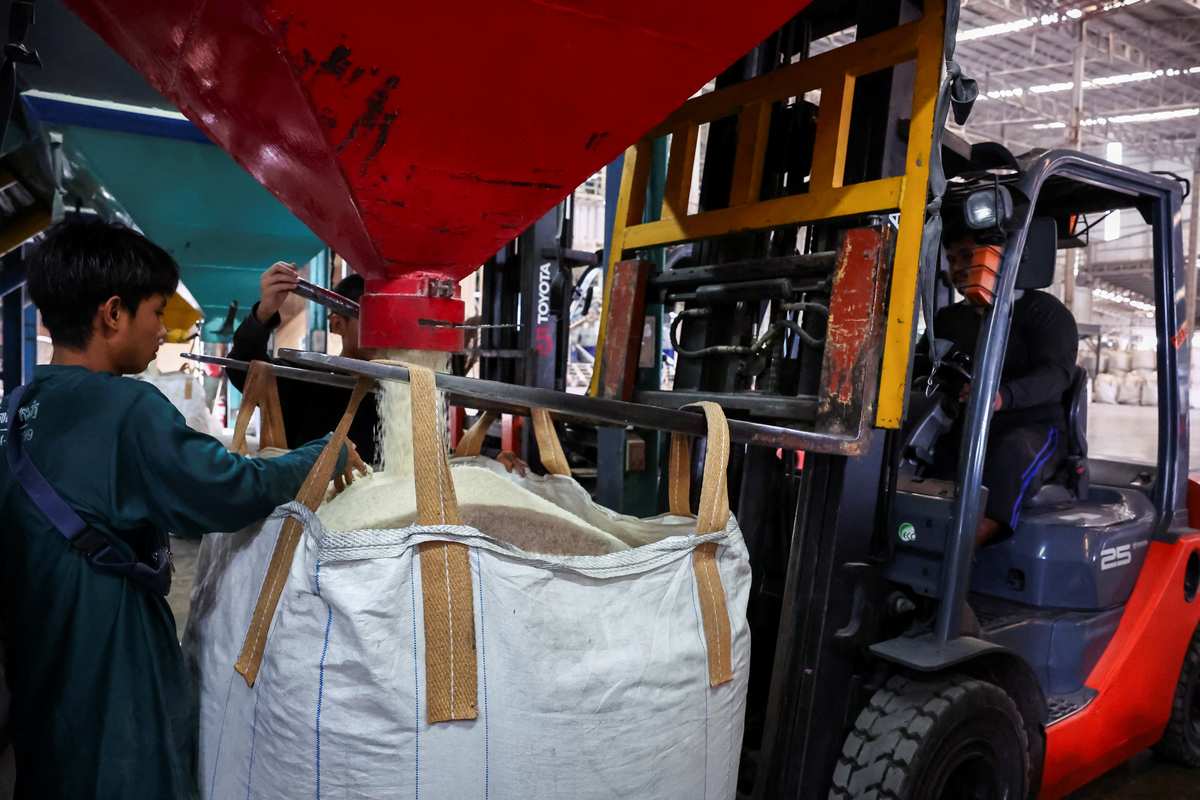 orkers load milled rice into a sack before distribution to exporters at a rice mill, as Thai rice farmers face pressure following the imposition of tariffs, which are currently paused, by U.S. President Donald Trump, in Nakhon Pathom province, Thailand, April 18, 2025.