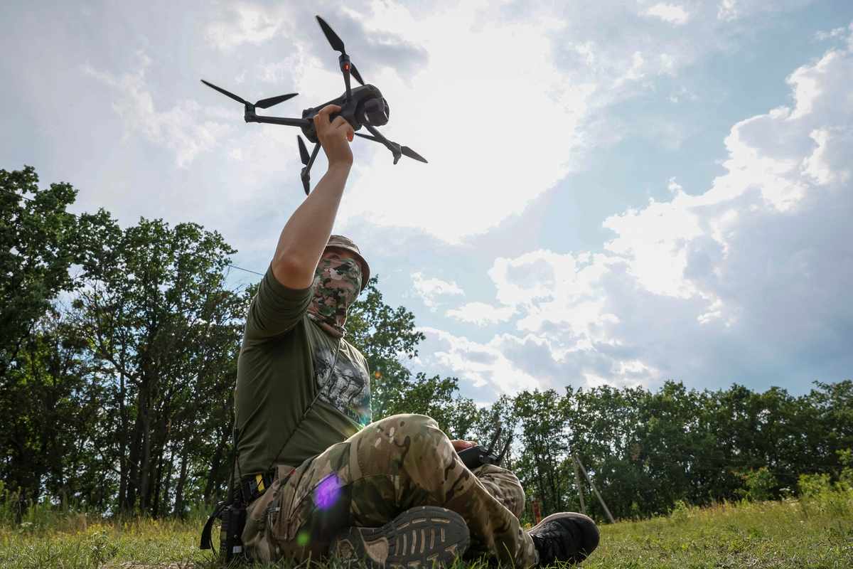A student of the school for drone pilots practices during a lesson, amid Russia’s attack on Ukraine, in an undisclosed location, Ukraine, June 30, 2023.