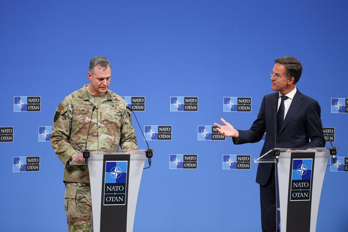 NATO Secretary General Mark Rutte and Supreme Allied Commander Europe Alexus G. Grynkewich attend a press conference at the Alliance headquarters in Brussels, Belgium September 12, 2025.