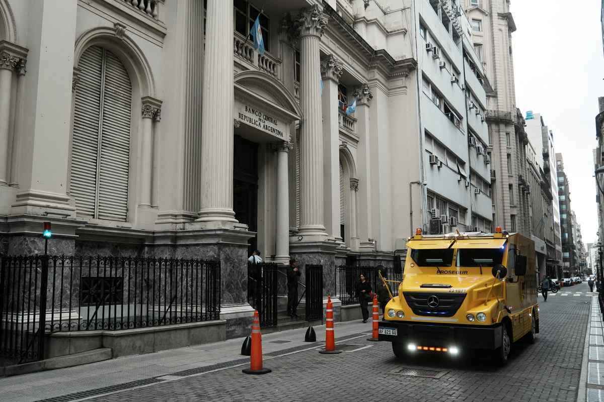 An armored truck drives past Argentina’s Central Bank, as Argentina’s government expects the International Monetary Fund board will approve a $20 billion loan, in Buenos Aires, Argentina April 11, 2025.