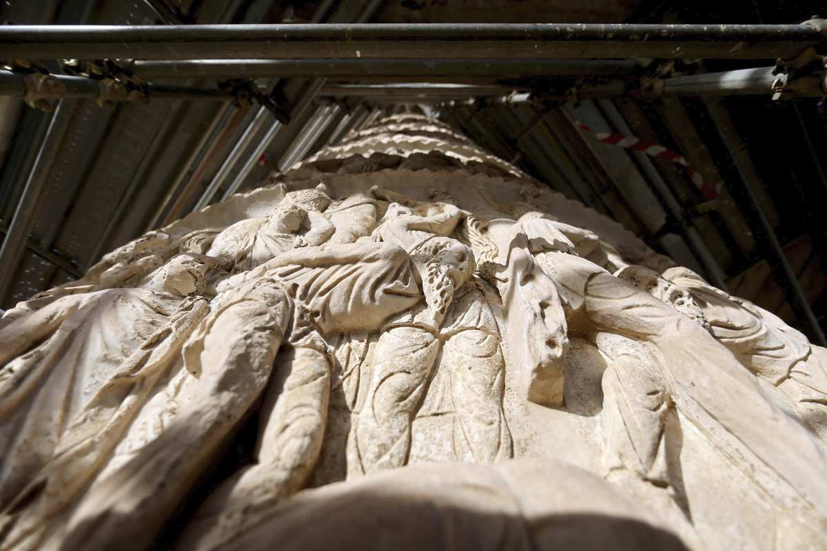 A portion of the Column of Marcus Aurelius during restoration work
