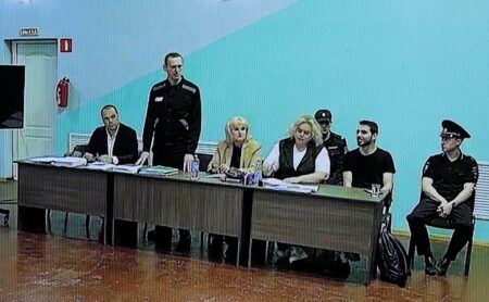 MELEKHOVO, Russia (Reuters) — Jailed opposition leader Alexei Navalny appeared before a Russian cou...