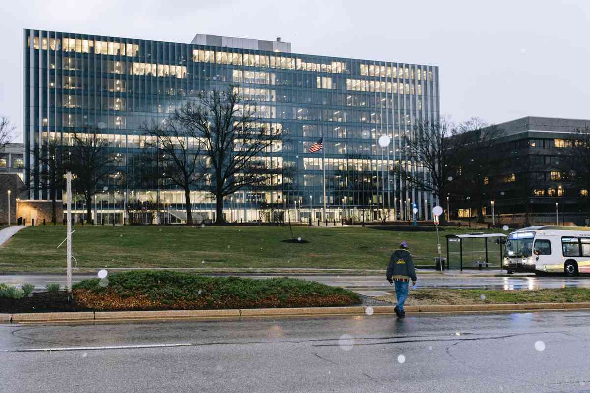 Rain showers pass over the Social Security Administration headquarters in Woodlawn, Maryland, on March 20.