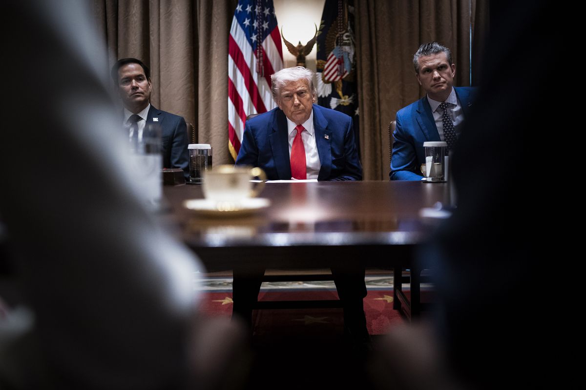 From left, Secretary of State Marco Rubio, President Donald Trump and Defense Secretary Pete Hegseth during a Cabinet meeting Thursday at the White House.