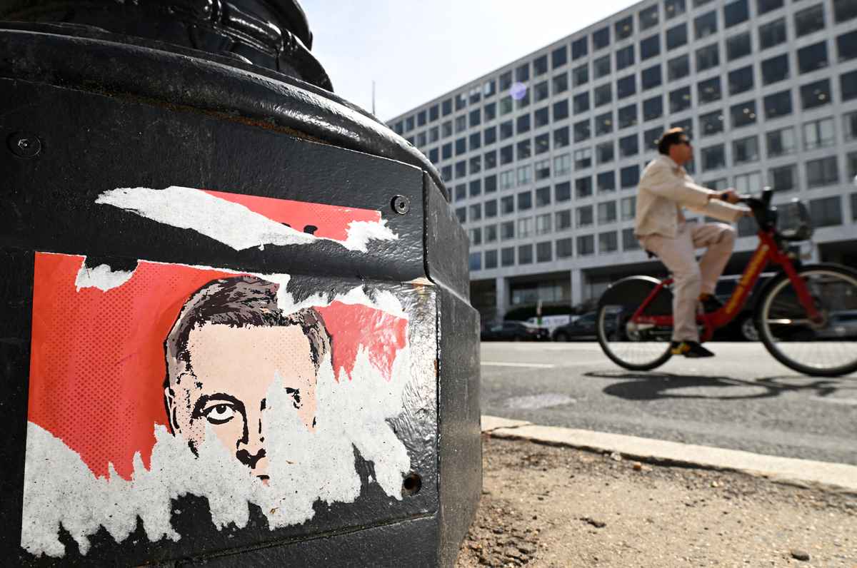 A torn image of Elon Musk is seen along Independence Ave SW. Musk’s group, the U.S. DOGE Service, has placed new curbs on federal grant payments.