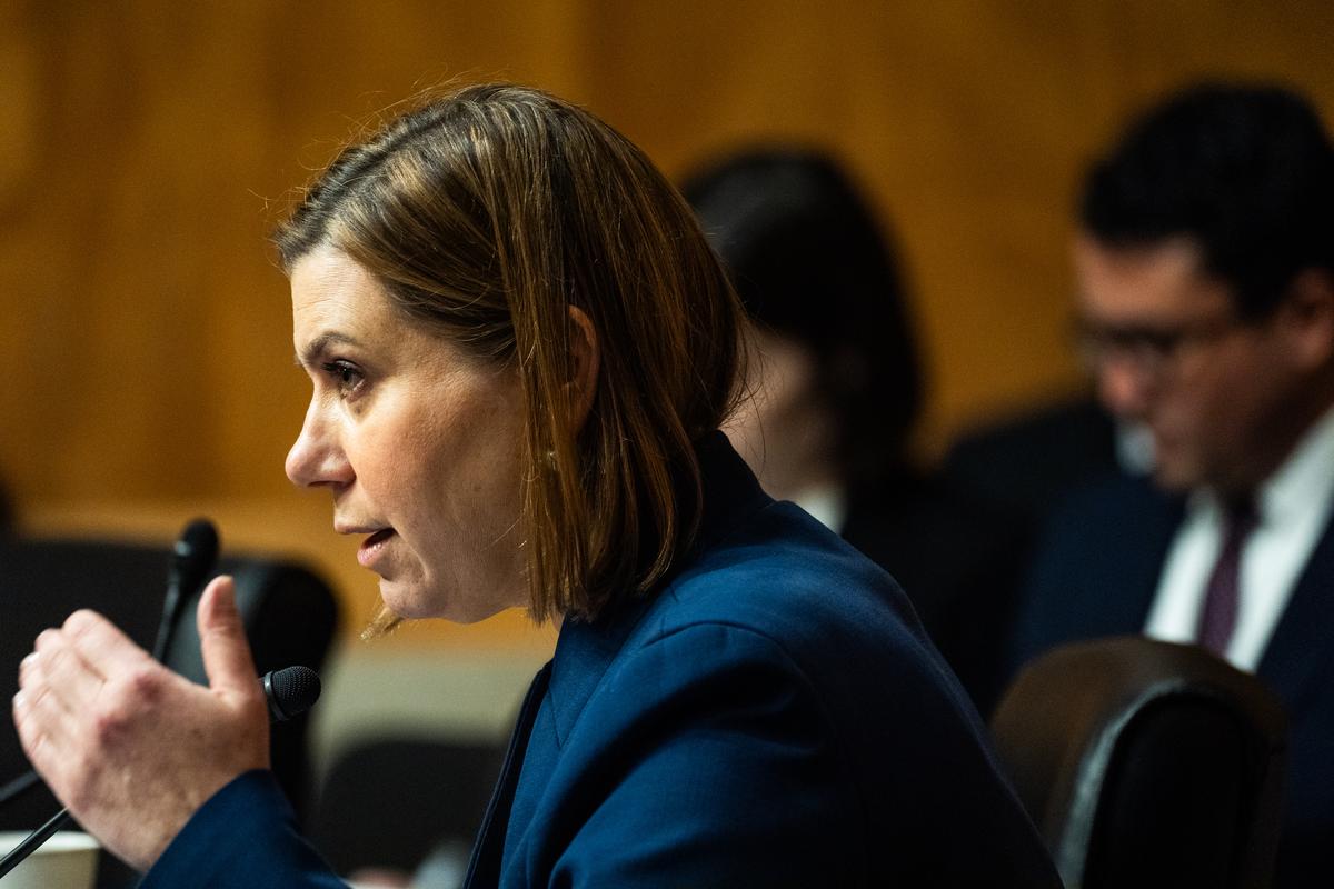 Sen. Elissa Slotkin (D-Michigan) during a Senate Committee on Homeland Security and Governmental Affairs hearing on April 3.