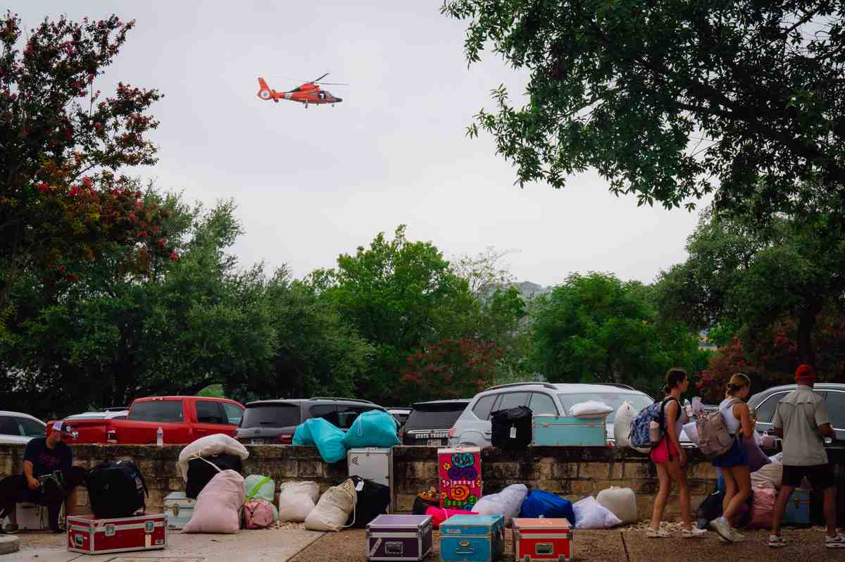 At a reunification center in downtown Kerrville, volunteers in bright orange caps directed parents waiting for their daughters from Camp Waldemar into lines based on their cabin names: “Swiss Chalet I and II,” “Happy Heaven I” and “Ranch House II.” Meanwhile, teenagers helped unload brightly colored camp trunks and black duffel bags with Waldemar logos from flatbed trailers.