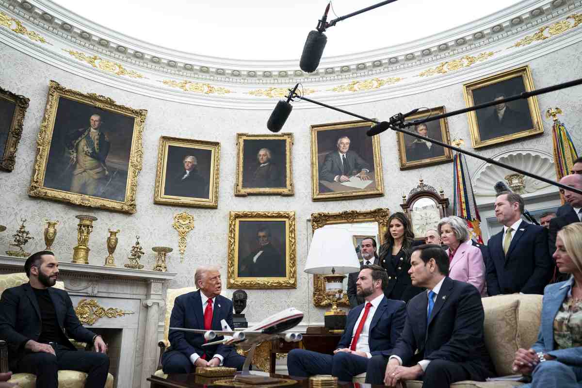 President Donald Trump hosts El Salvador’s president, Nayib Bukele, left, in the Oval Office in April.