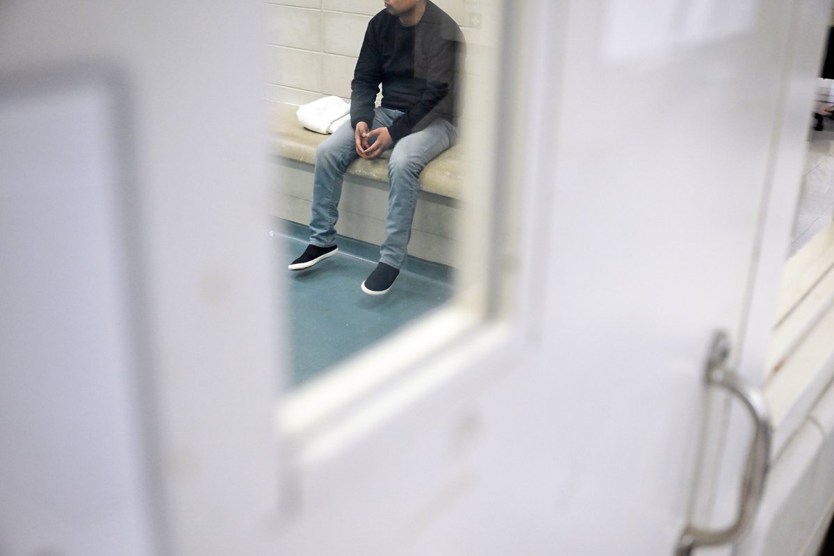 A person sits in a holding cell after he was detained during ICE-led operations to apprehend illegal immigrants on Jan. 28 in New York.