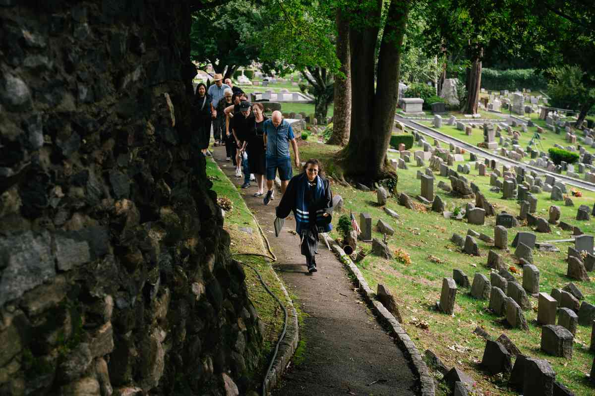 Rabbi Andrea Frank leads Nancy and Ken Skor, along with their friends, to their dog’s funeral at Hartsdale on Sept. 5.
