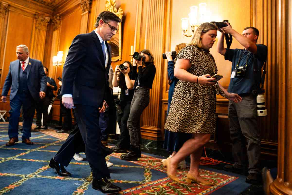 House Speaker Mike Johnson (R-Louisiana) leaves a news conference on Thursday at the U.S. Capitol.
