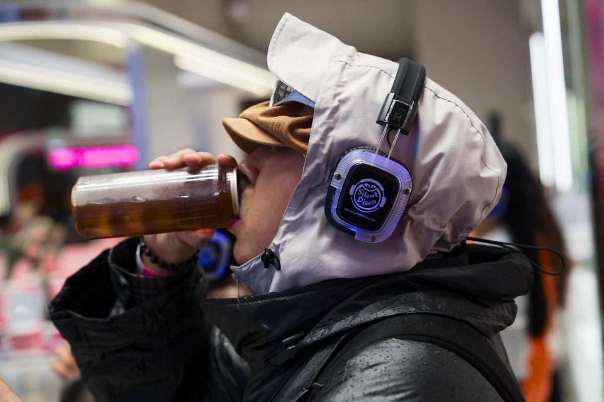 An attendee sips coffee at the rave. The events are popular among young South Koreans looking for alternatives to alcohol-fueled get-togethers.