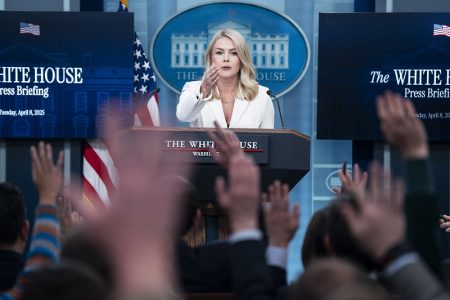 The Washington PostWhite House press secretary Karoline Leavitt holds a news briefing on Tuesday. Th...