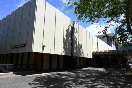 The University of Hawaii at Manoa is located north of Waikiki Beach. The spacious campus is lush with tropical trees and filled with birdsong.