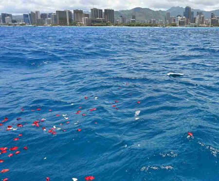 “This is the sea of Hawaii that Dad loved so much. Please rest in peace.”
