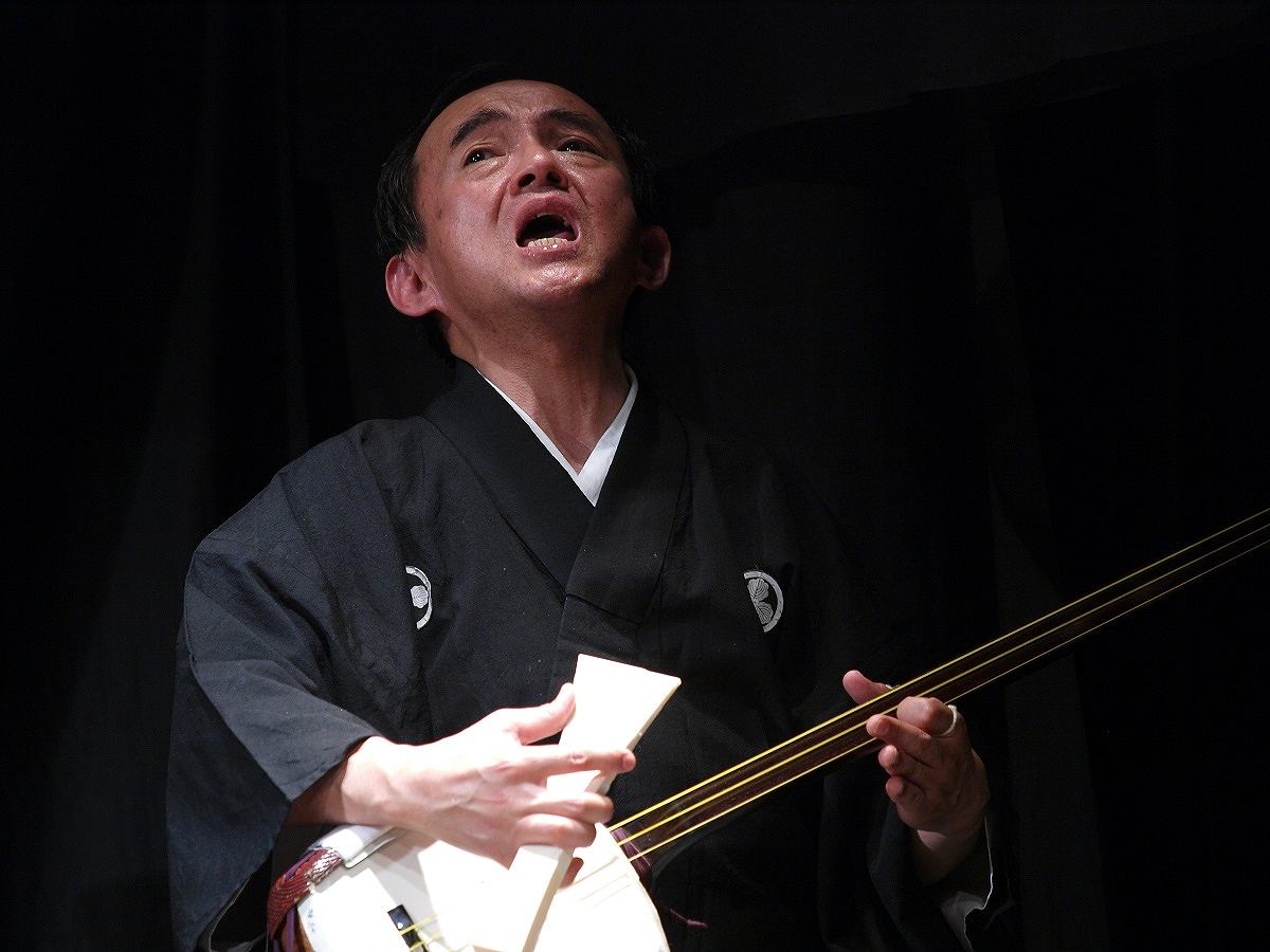 File photo: Seiki Keene plays music and gives a Joruri storytelling performance.
