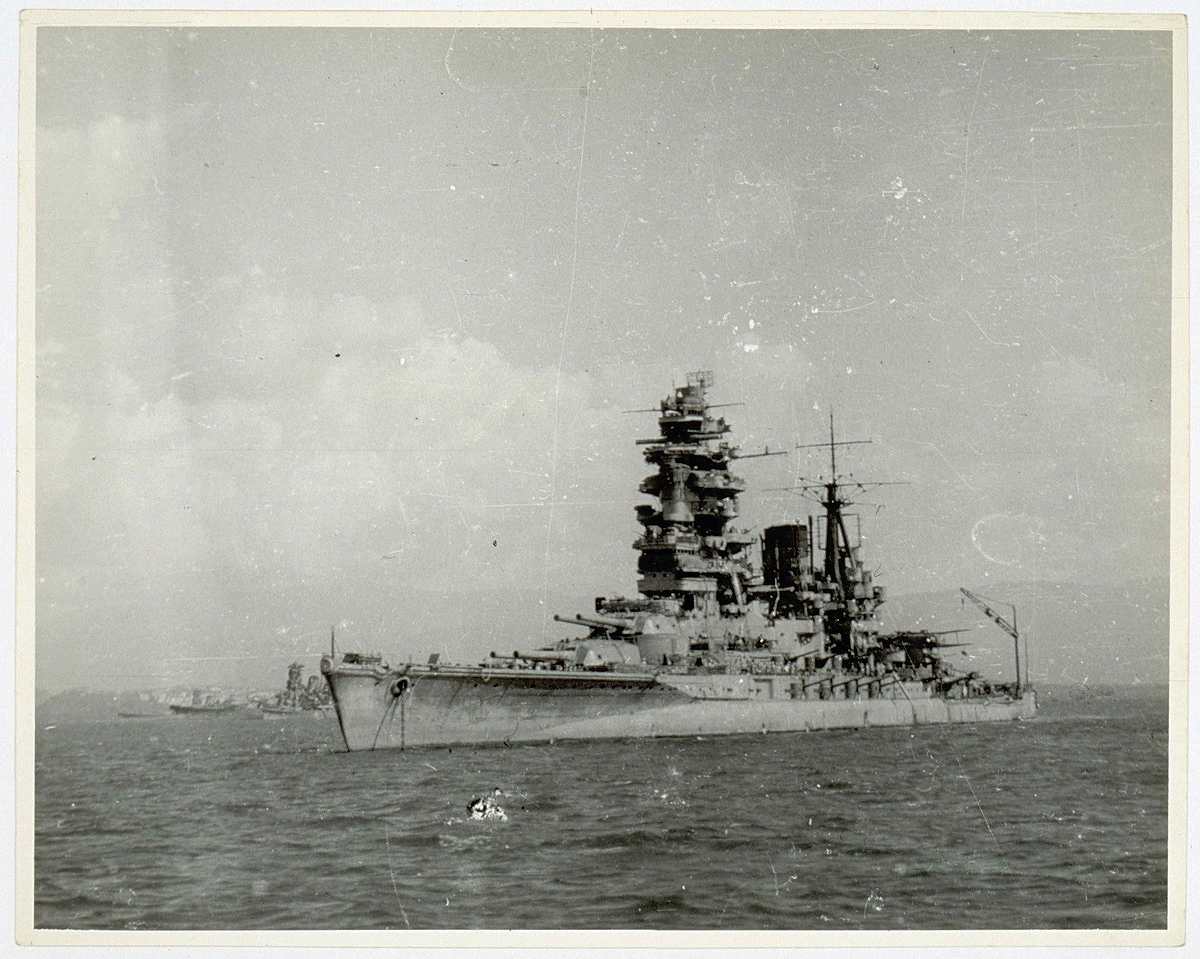 The battleship Nagato is photographed at Brunei Berth, Borneo Island on Oct. 21, 1944.